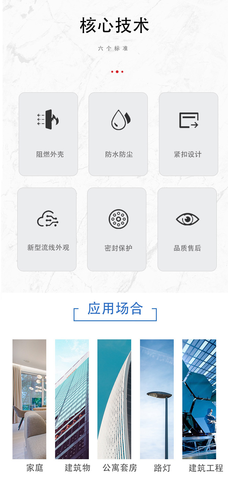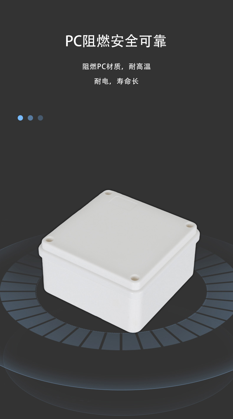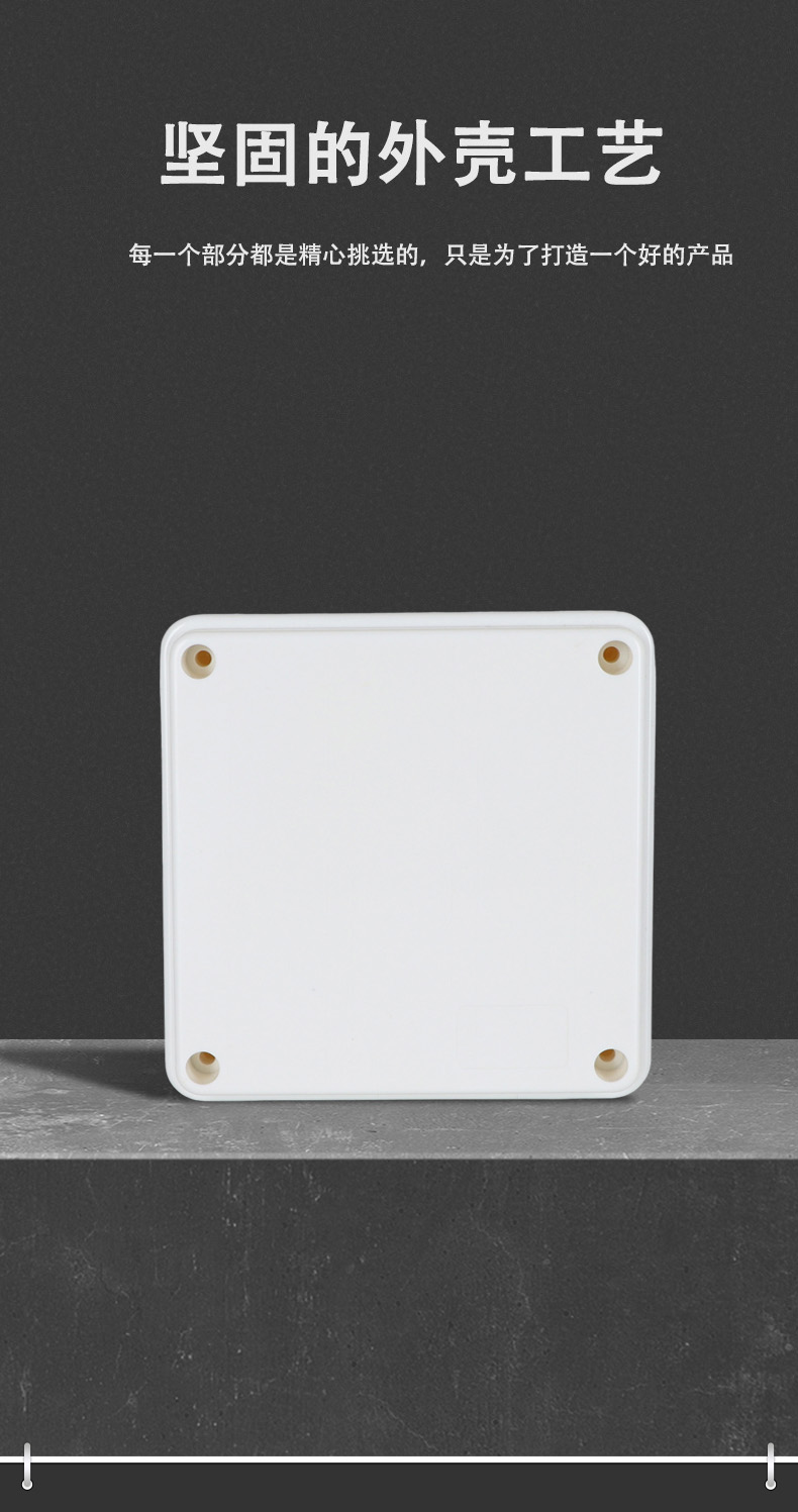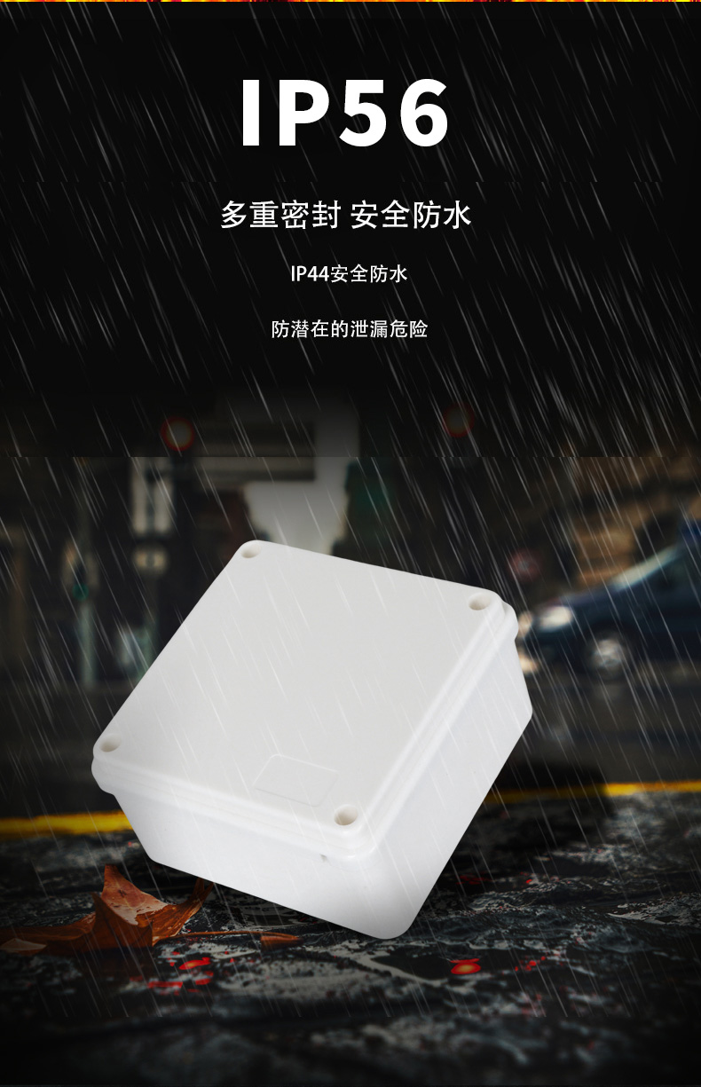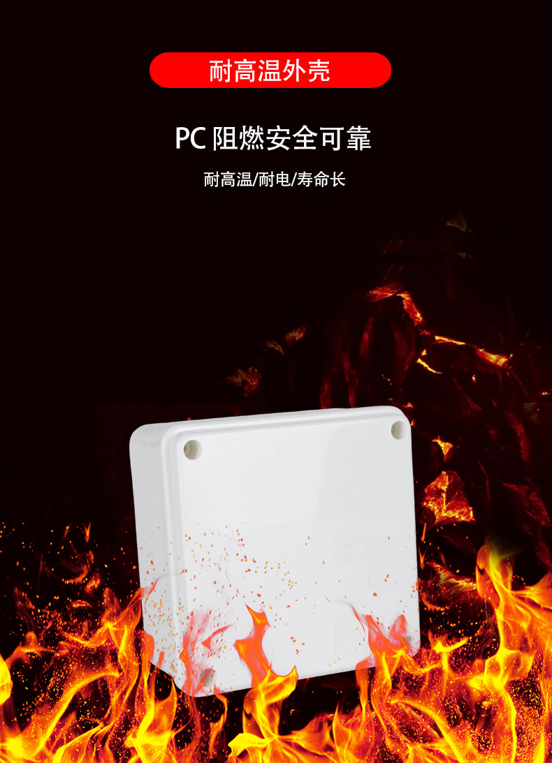 多重密封/安全防水 防水IP等級(jí) (IP44)可供選材料(常ABS)ABS阻燃、PC,合金材PC阻燃安全可靠/耐高溫/耐電/壽命長每一個(gè)部分都是精心挑選的,只是為了打造一個(gè)好的產(chǎn)品
