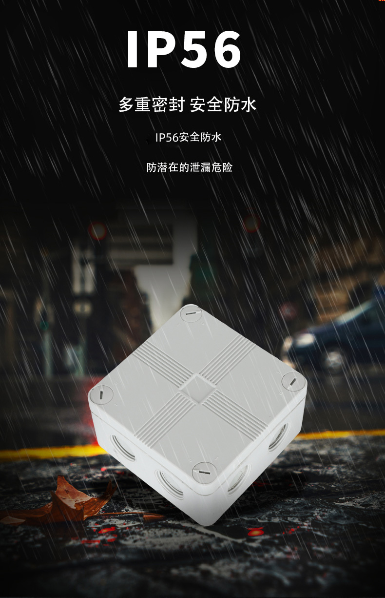 多重密封/安全防水 防水IP等級(jí) (IP44)可供選材料(常ABS)ABS阻燃、PC,合金材PC阻燃安全可靠/耐高溫/耐電/壽命長(zhǎng)每一個(gè)部分都是精心挑選的,只是為了打造一個(gè)好的產(chǎn)品