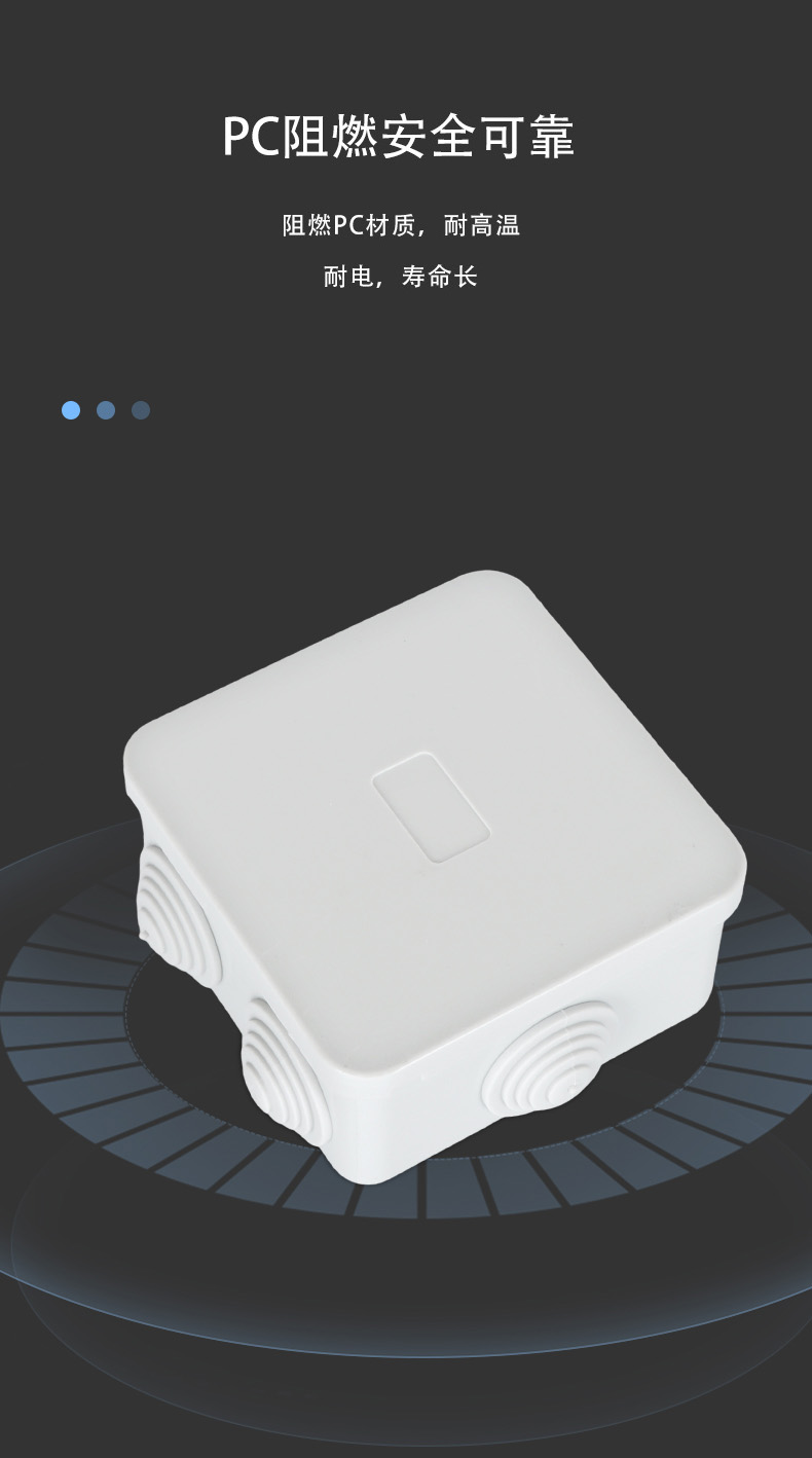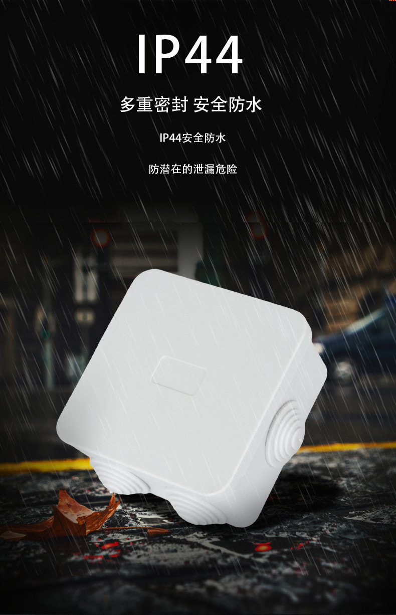 尺寸:80×80×40(mm)多重密封/安全防水 防水IP等級 (IP44)可供選材料(常ABS)ABS阻燃、PC,合金材PC阻燃安全可靠/耐高溫/耐電/壽命長每一個部分都是精心挑選的,只是為了打造一個好的產品
