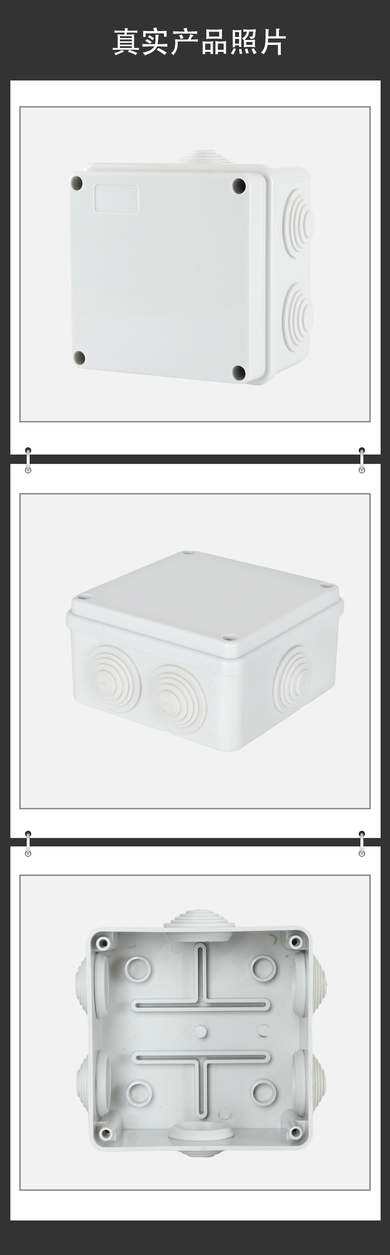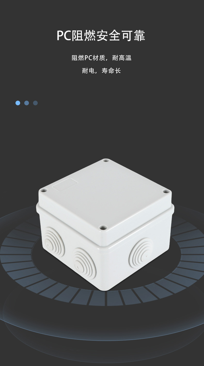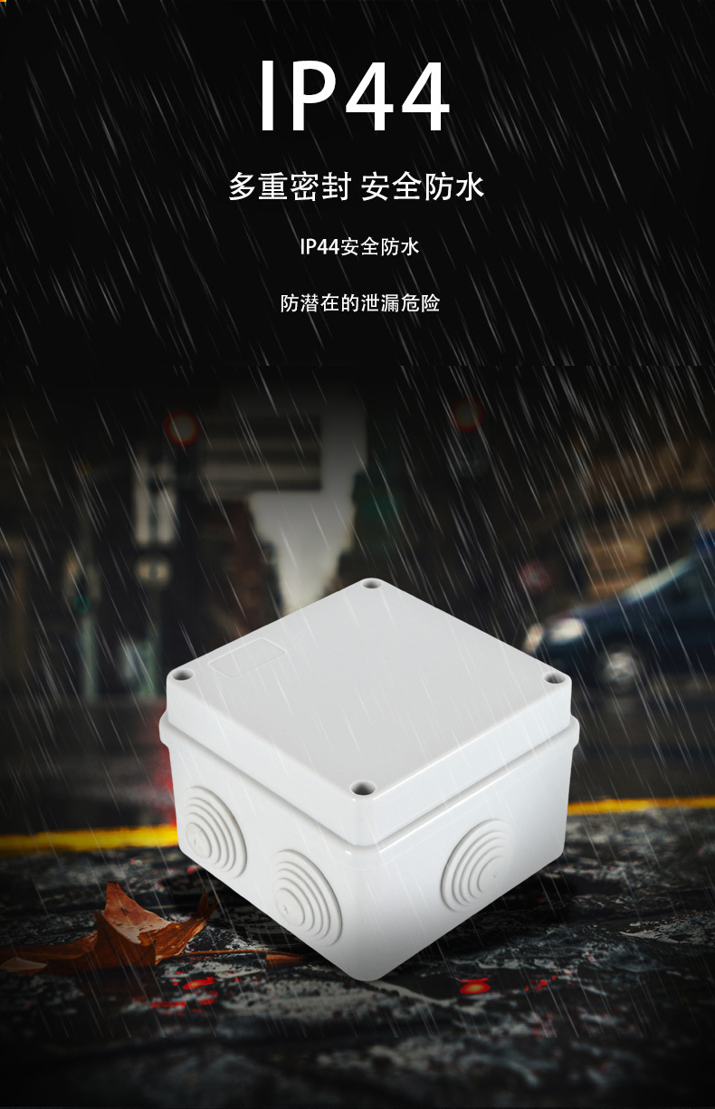 尺寸:100×100×50(mm)多重密封/安全防水 防水IP等級 (IP44)可供選材料(常ABS)ABS阻燃、PC,合金材PC阻燃安全可靠/耐高溫/耐電/壽命長每一個部分都是精心挑選的,只是為了打造一個好的產品